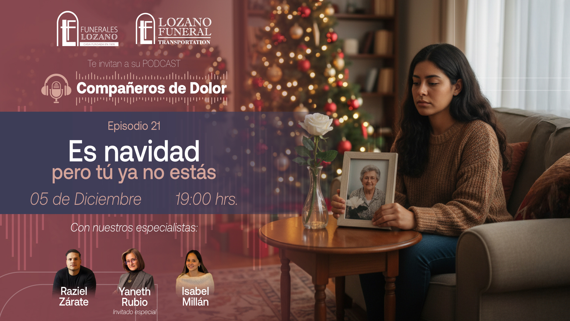 Funerales Lozano te invita este 05 de diciembre a las 19:00 hrs a compartir un espacio de acompañamiento y comprensión, donde juntos exploraremos cómo crear nuevos rituales, respetar nuestros tiempos emocionales y permitirnos sentir, sin juicios, todo lo que trae la Navidad cuando alguien falta.